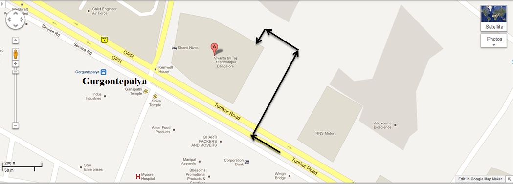 onto the other side of Tumkur road and enter Vivanta by Taj.