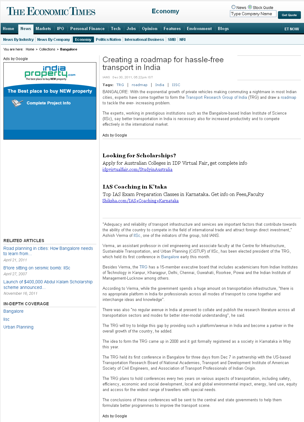TIMES OF INDIA BANGALORE FRIDAY 9 DECEMBER, 2011
